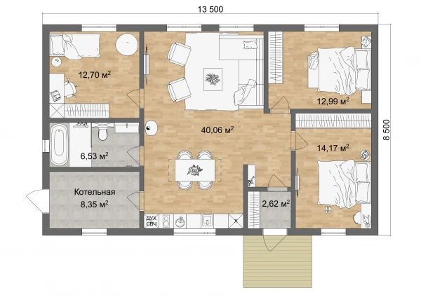 Проект одноэтажного дома "Голованово-1" из бруса