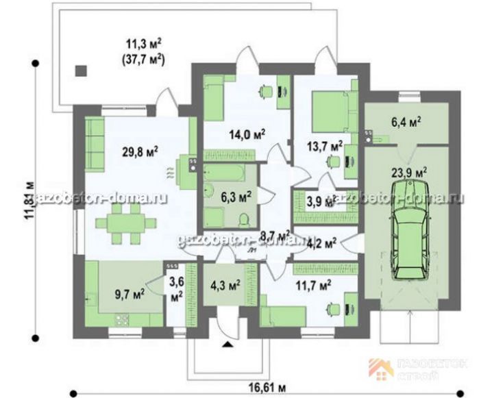 Проект одноэтажного дома "Золотой ключик-3" из бруса