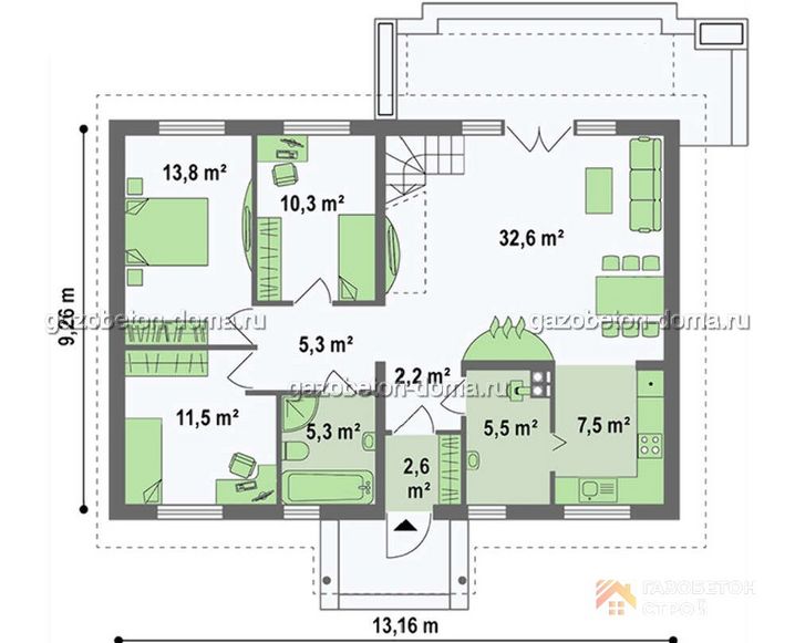 Проект двухэтажного коттеджа "Митрофанушка" из газобетона