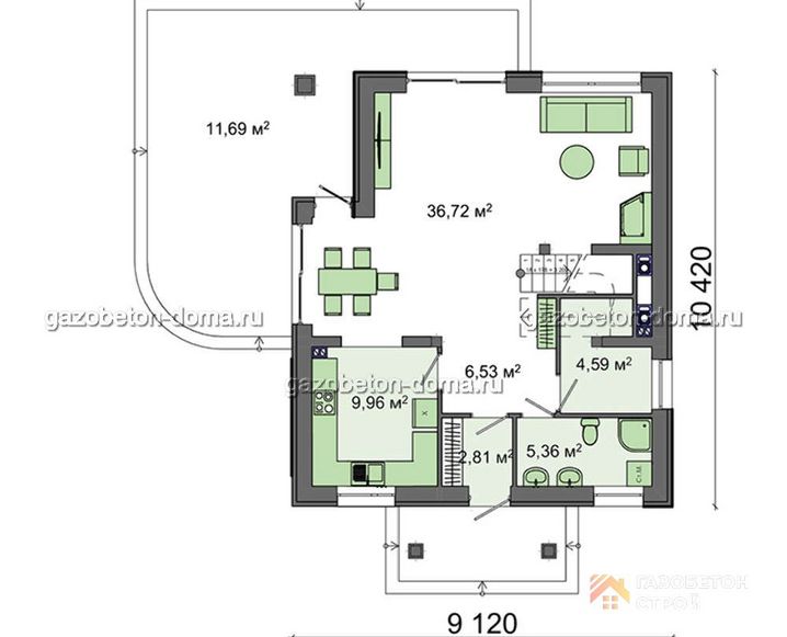 Дом из газобетона Проект ГБ-212