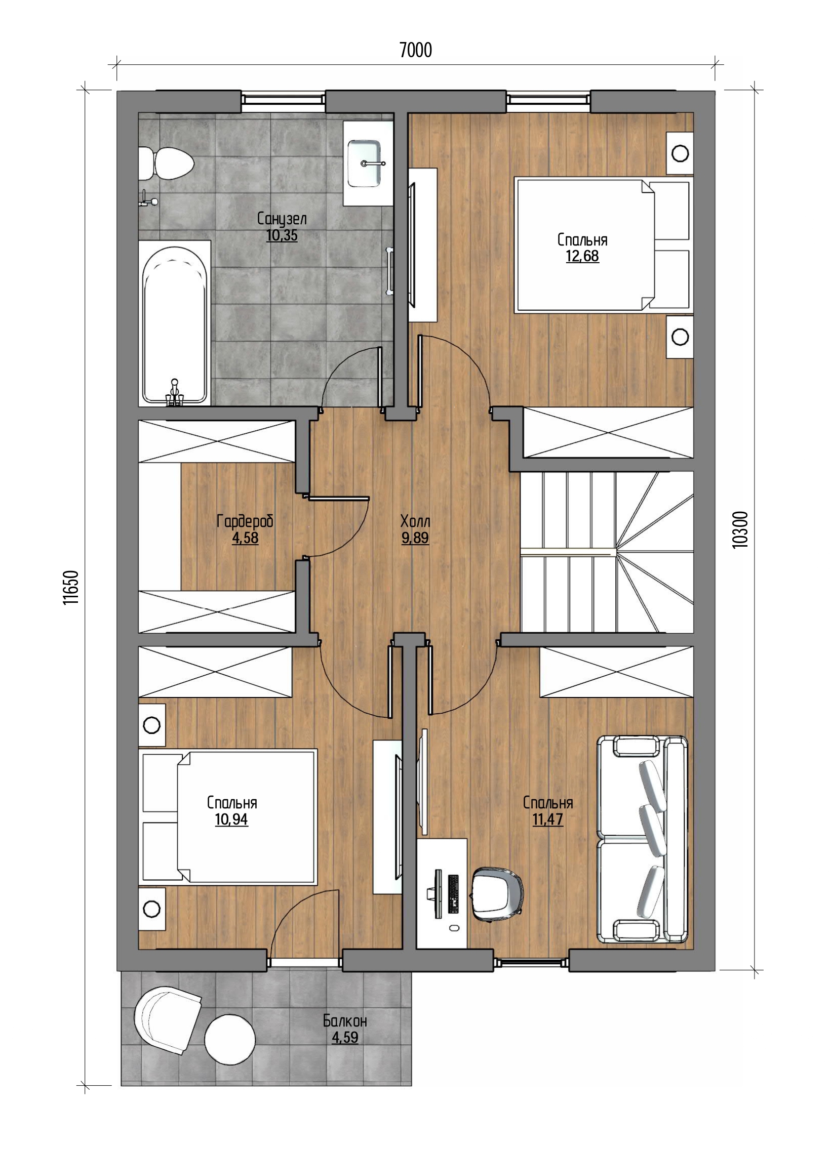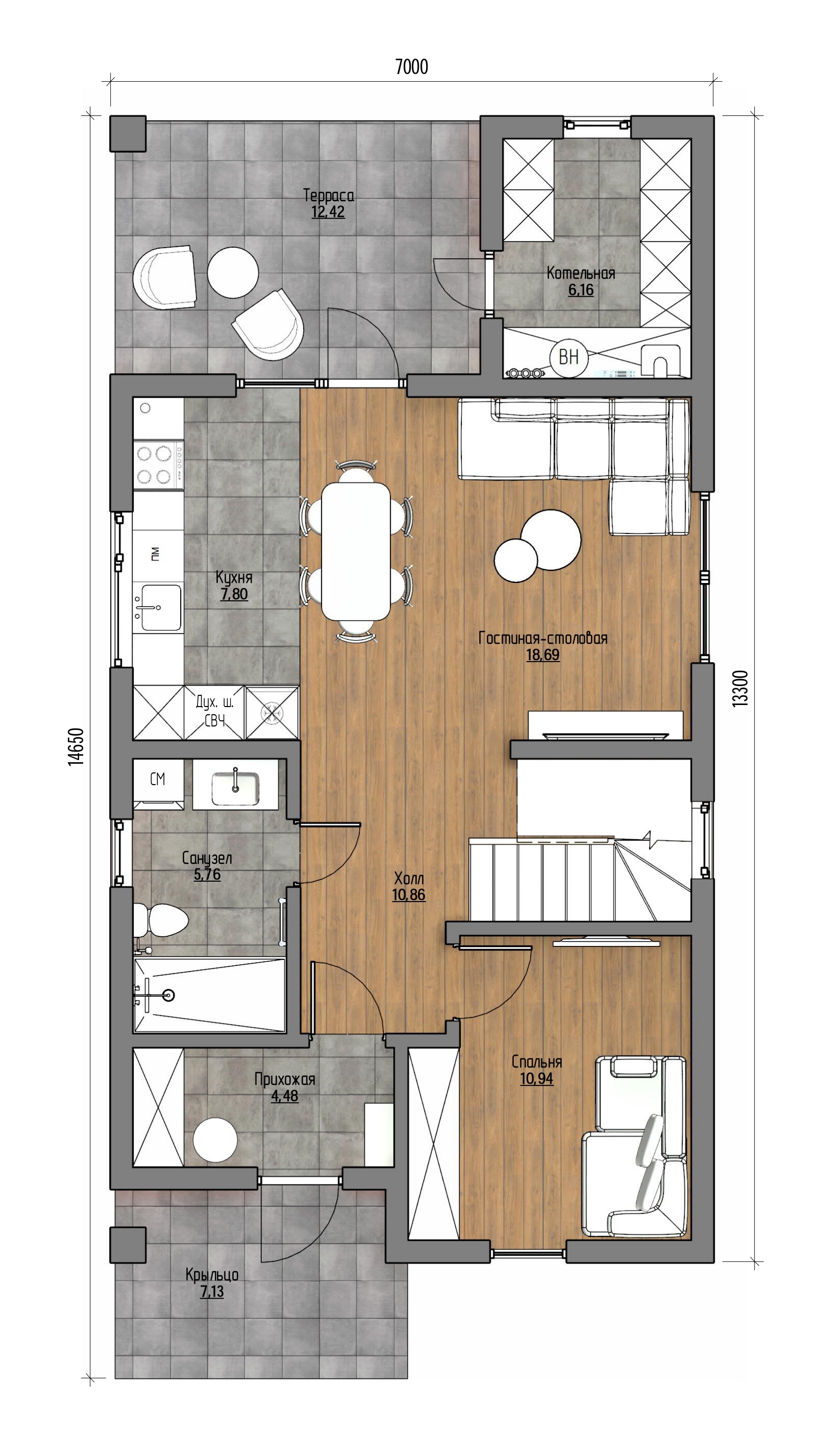 Проект двухэтажного дома с террасой и балконом Olimp-146 м² из газоблока — Домострой
