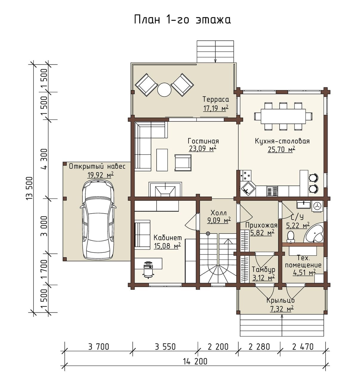 Проект одноэтажного дома "Дельта" из бруса