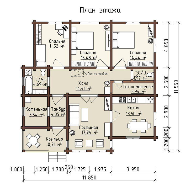 Проект одноэтажного дома "Красная Шапочка" из бруса