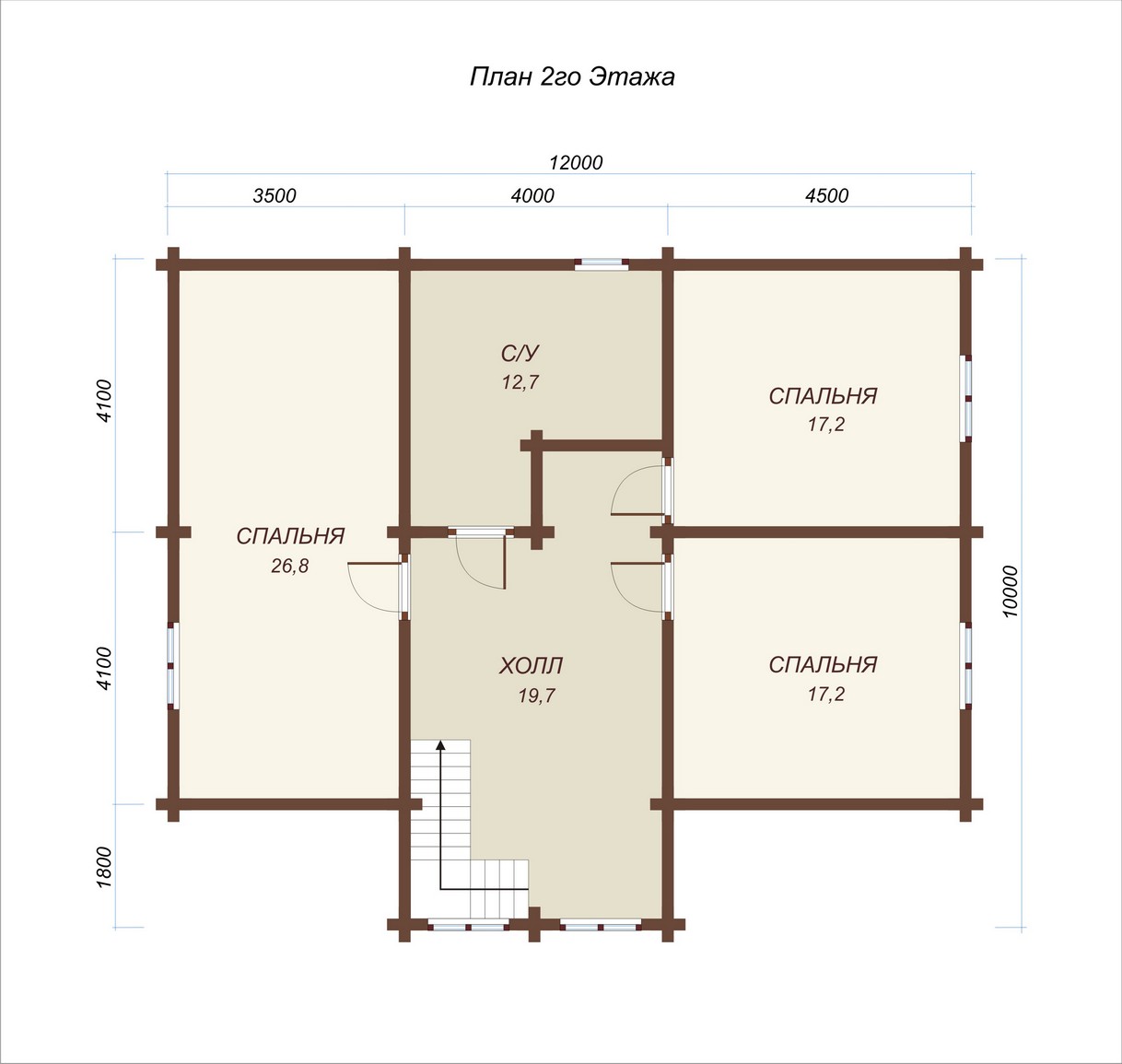 3 спальн. · 2 санузл. · 2 этаж