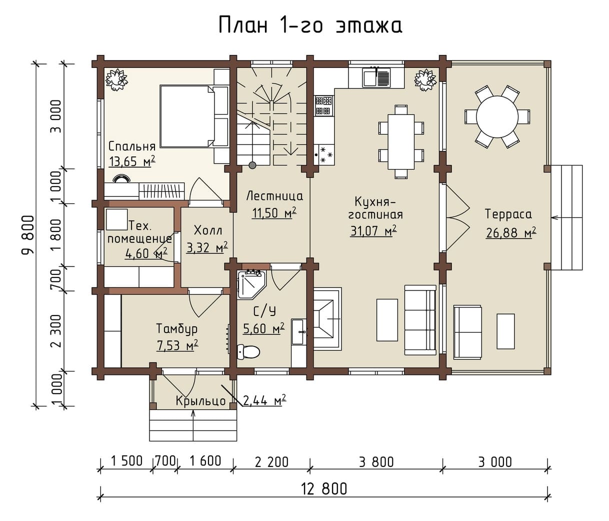 Проект одноэтажного дома "Кедр" из бруса