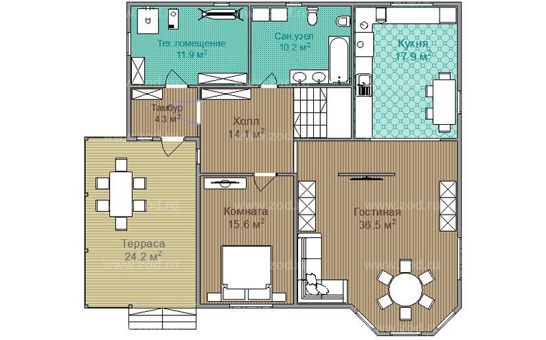 Проект одноэтажного дома "Дуэт 3" из бруса