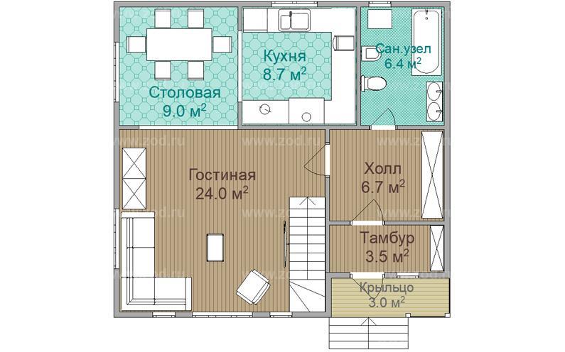 Проект одноэтажного дома "Пассадский" из бруса