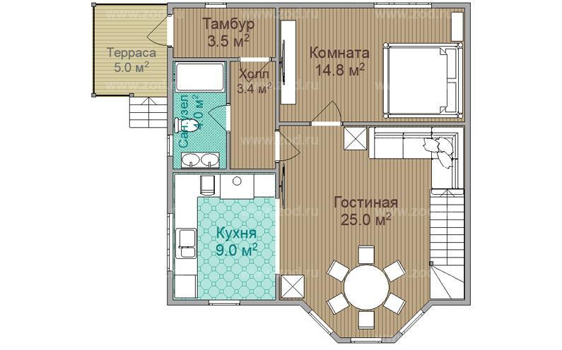 Проект одноэтажного дома "Лотос" из бруса