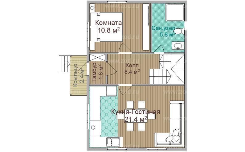 Каркасный дом 8x7.5 Проект "Бирюза"