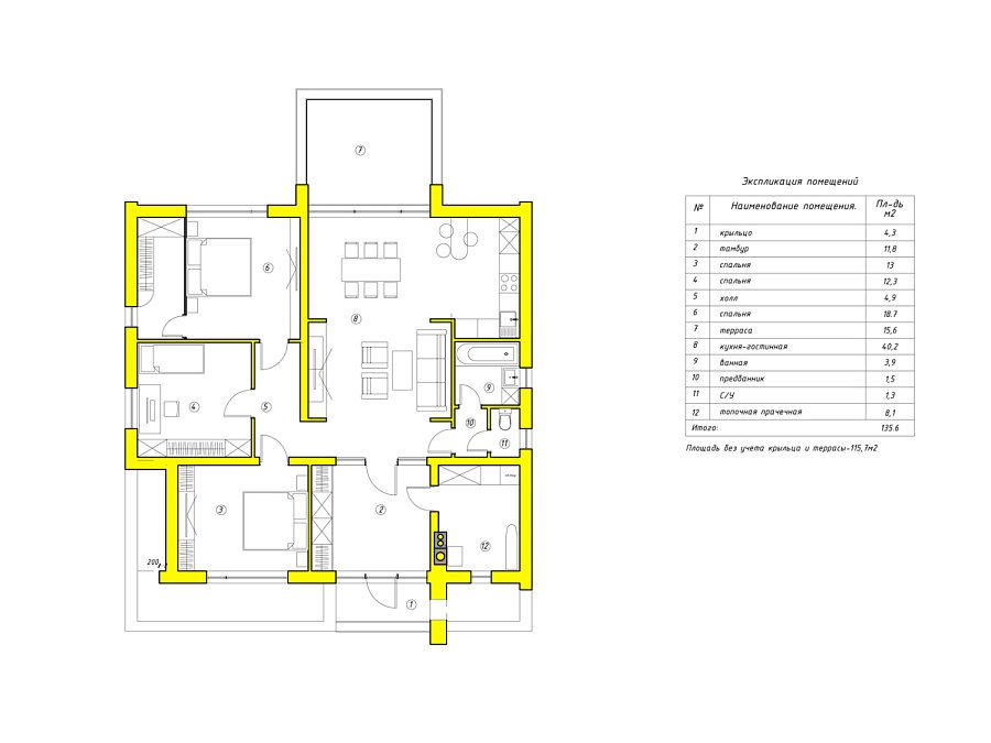 Проект одноэтажного дома "Опалево-М2" из бруса