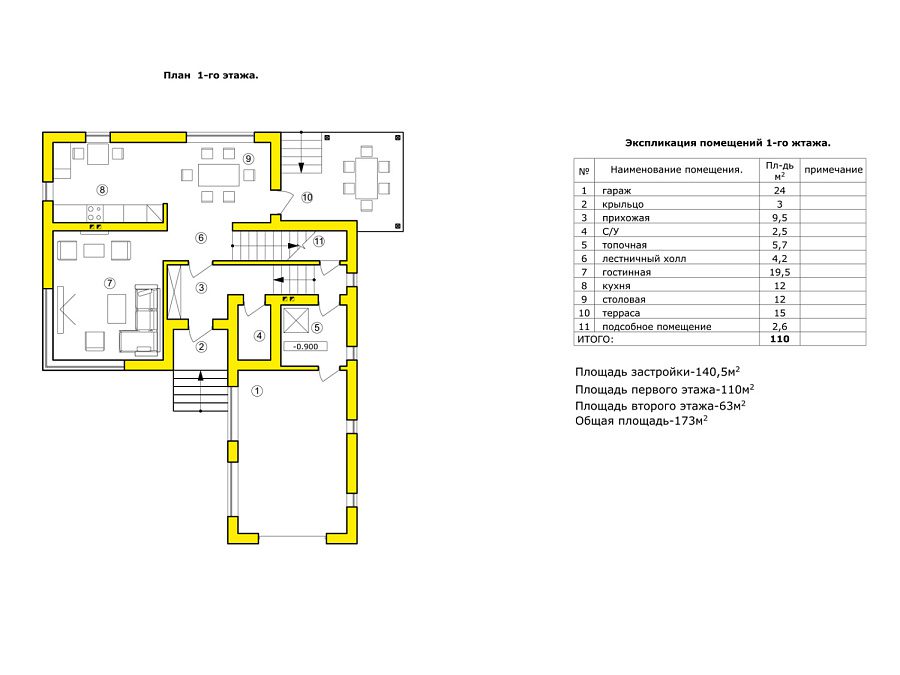 Проект одноэтажного коттеджа "Цезарь" из газобетона