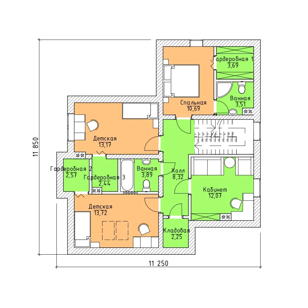 3 спальн. · 2 этаж