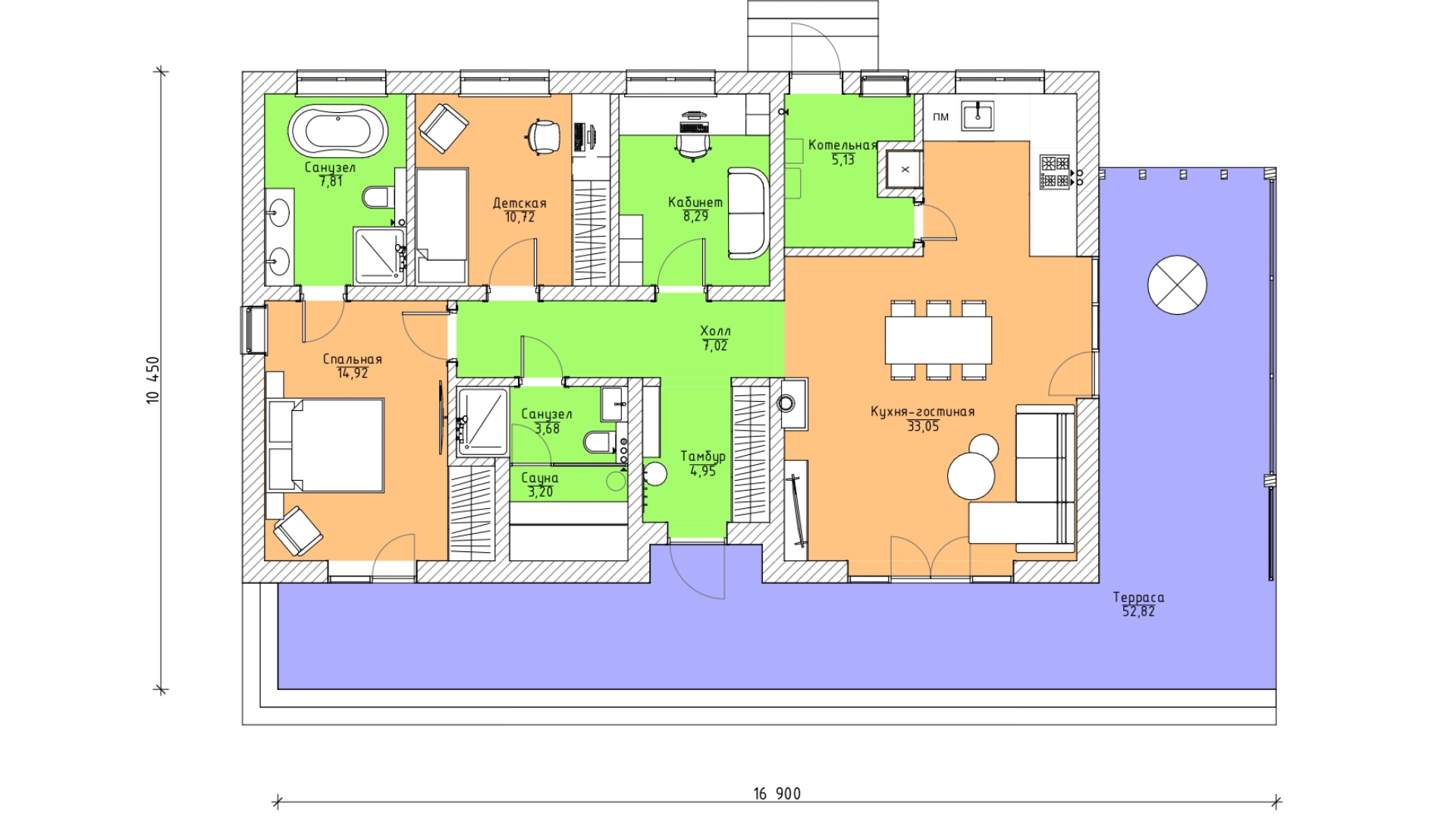 Проект одноэтажного дома "Опалево-М4" из бруса
