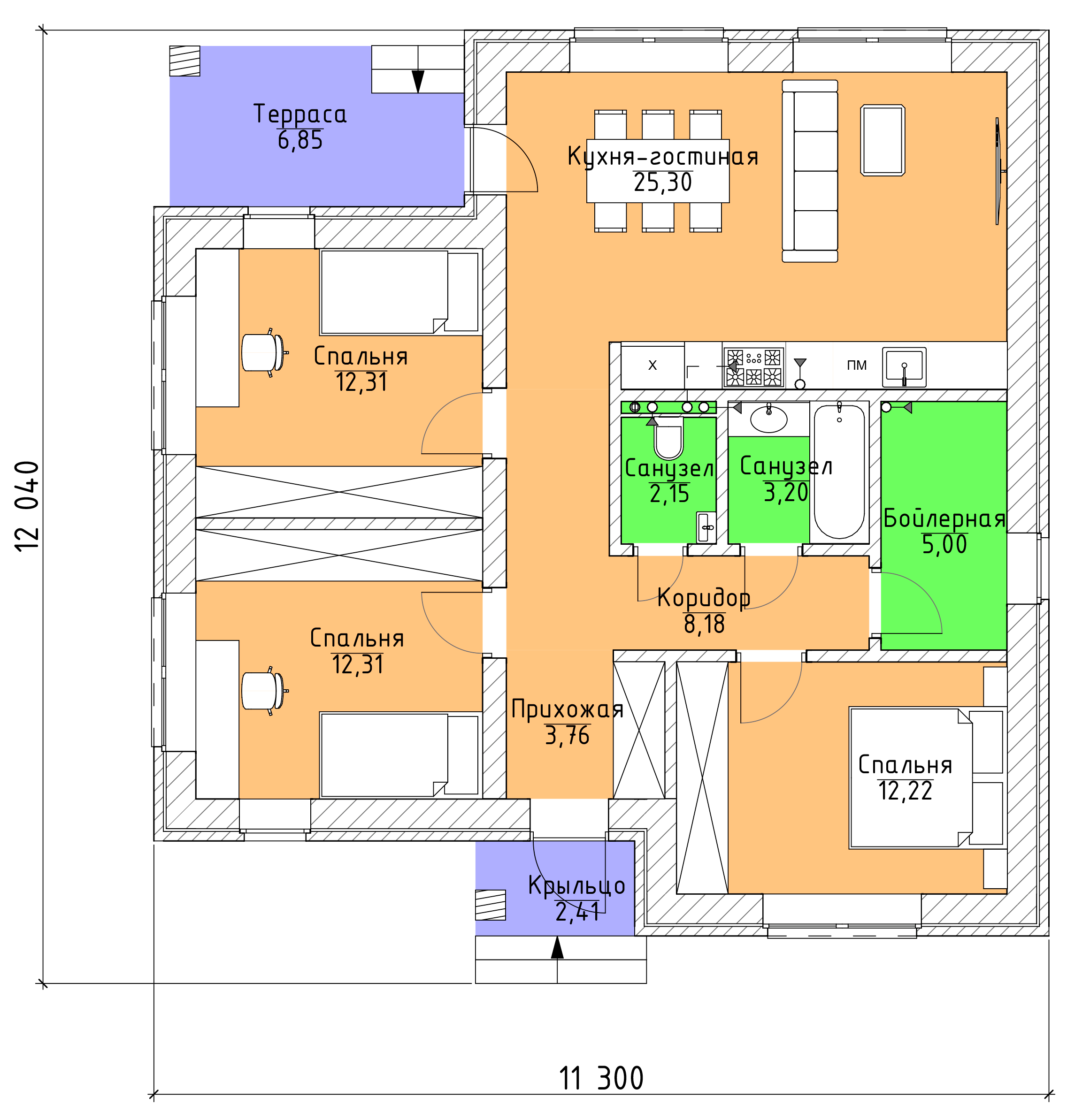 Проект одноэтажного дома "Печки-лавочки" из бруса