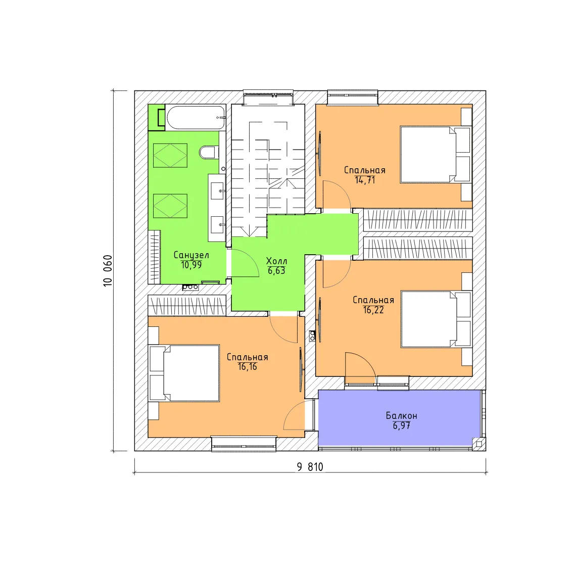 3 спальн. · 2 санузл. · 2 этаж