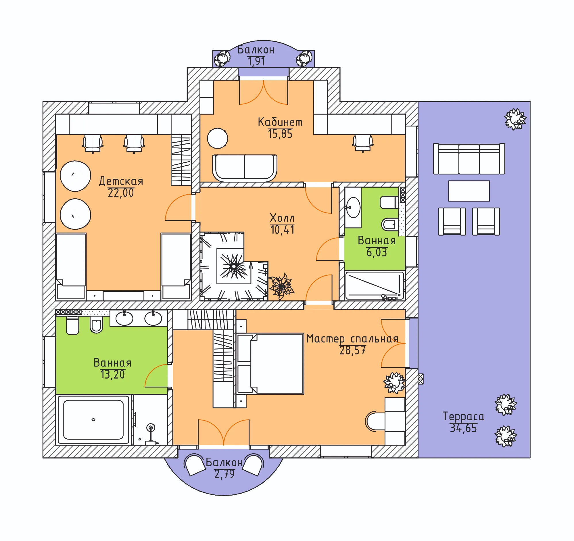3 спальн. · 5 санузл. · 2 этаж