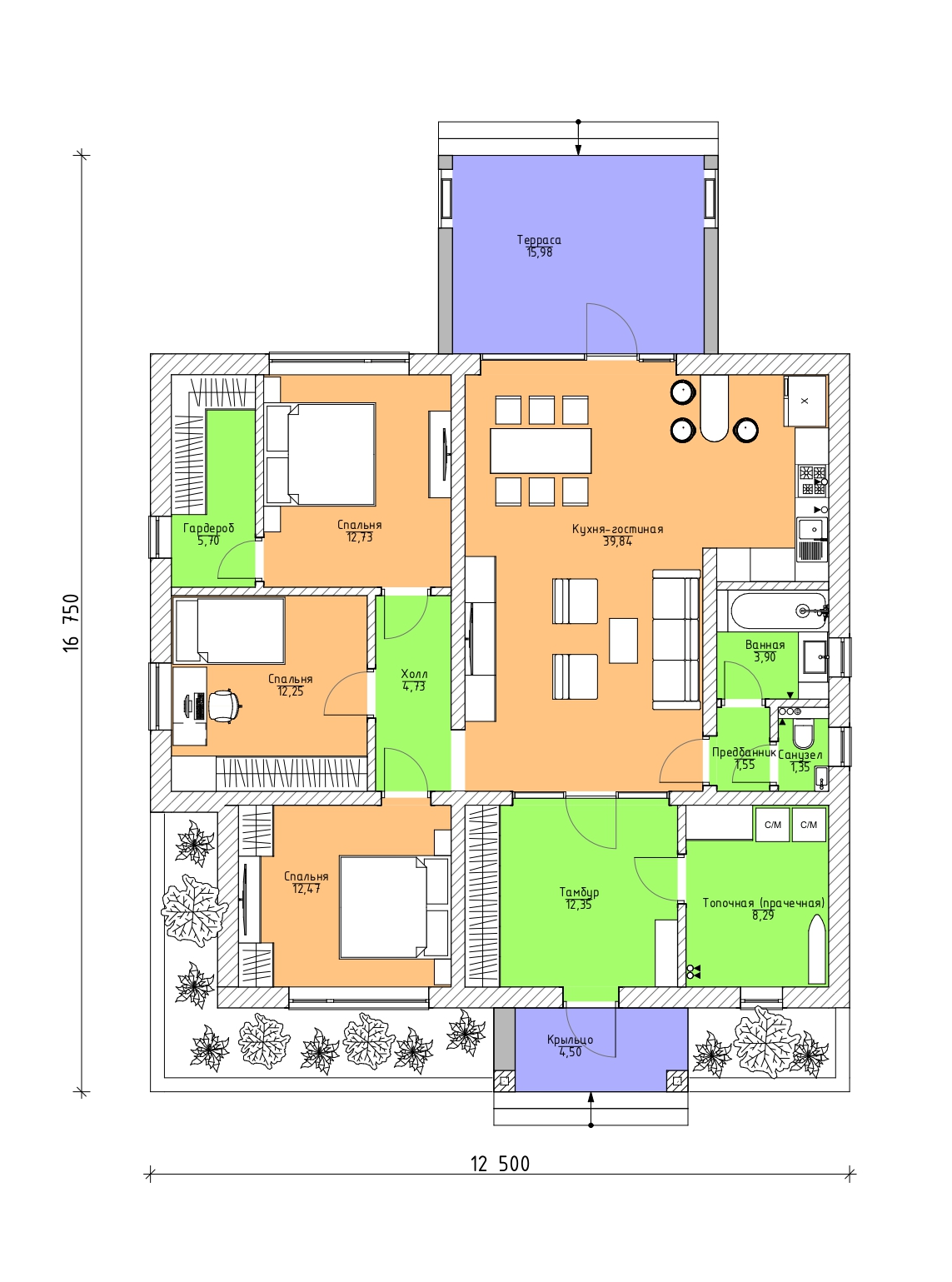 Проект одноэтажного дома "Опалево-М2" из бруса