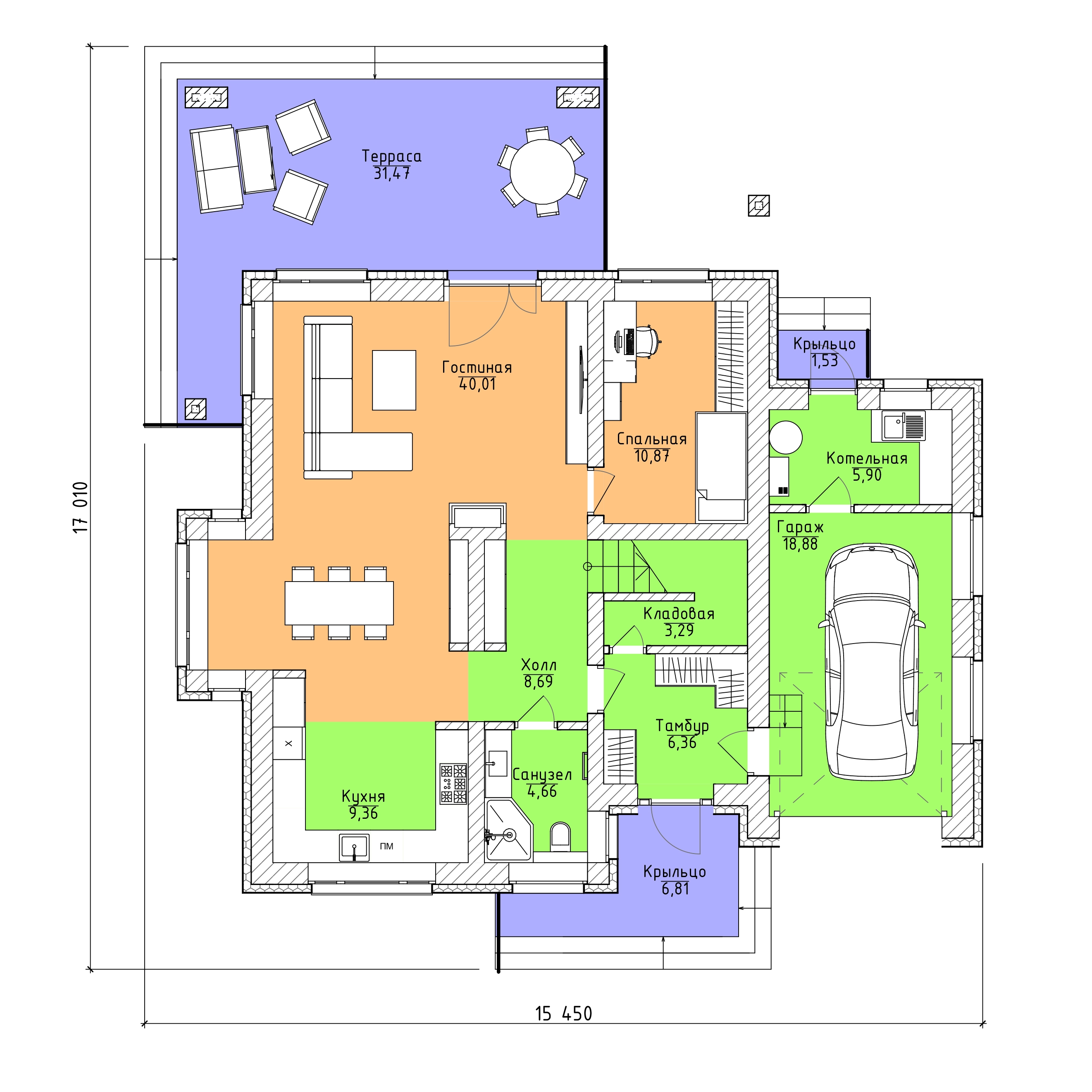 Проект одноэтажного каркасного дома "Титан"