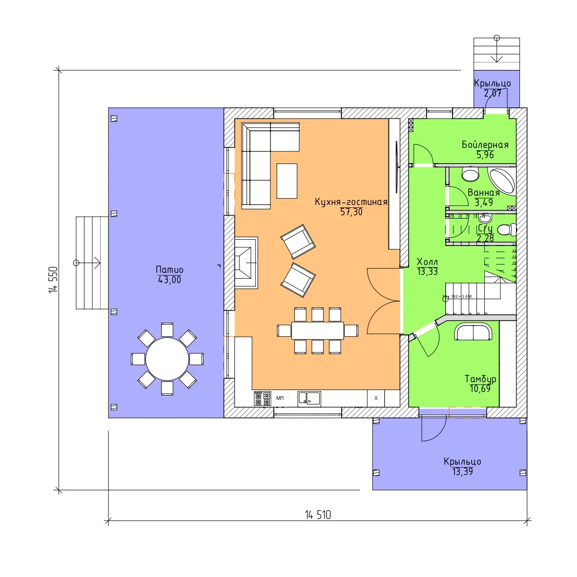 Проекты домов из газобетона Бунгало 2 M под ключ