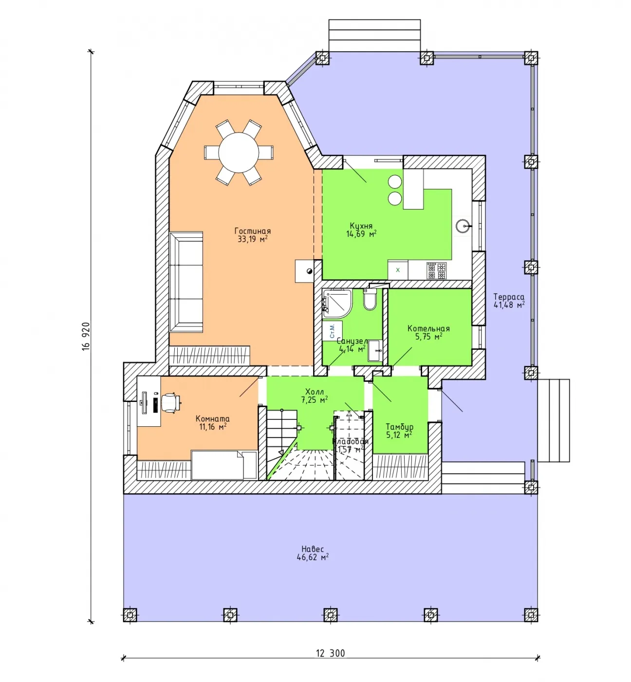 Проект одноэтажного комбинированного коттеджа "Эскимо"