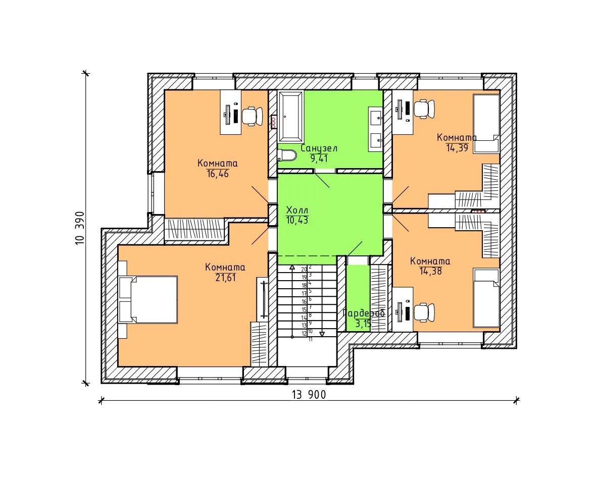 3 спальн. · 2 этаж