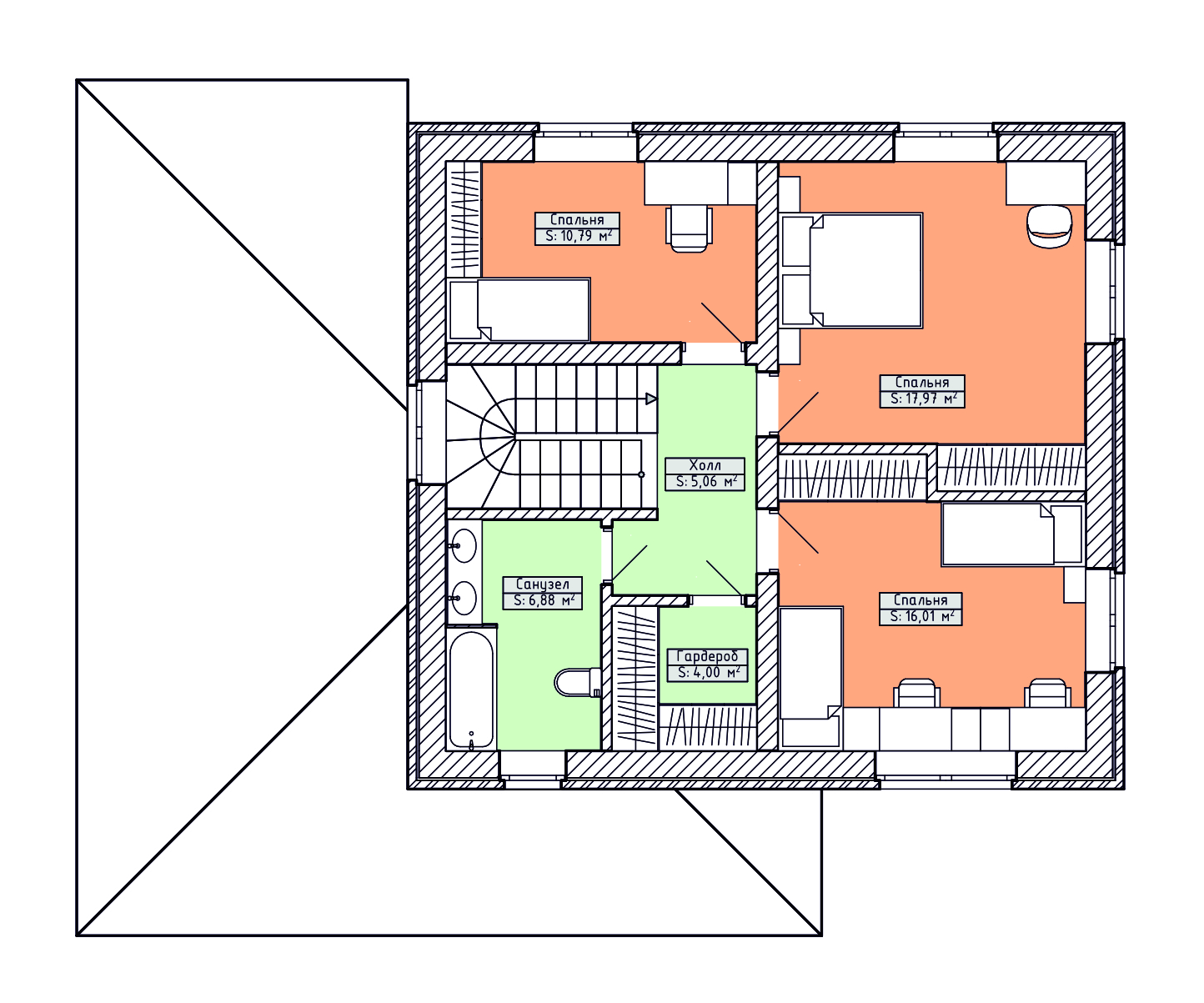 3 спальн. · 2 этаж