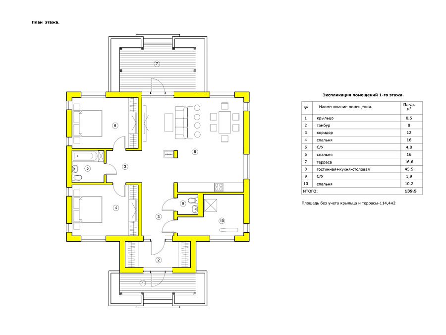 3 спальн. · 1 этаж