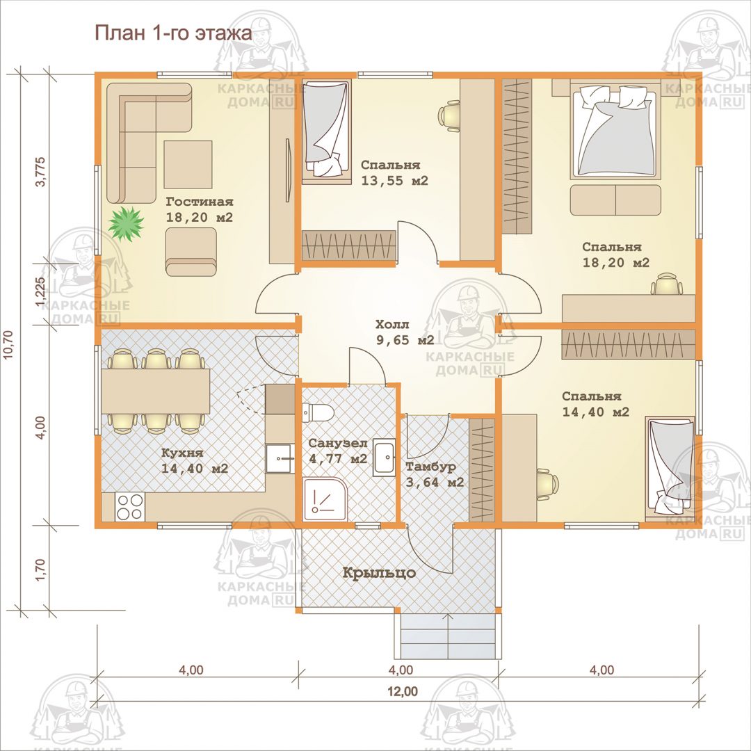 Каркасный дом 12x10 Проект "Эльбаит"