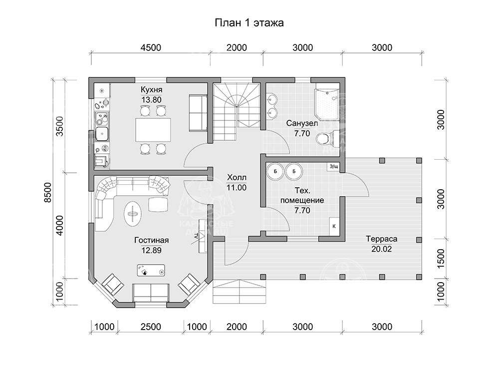 Каркасный дом 12.5x8.5 Проект "Аквамарин"