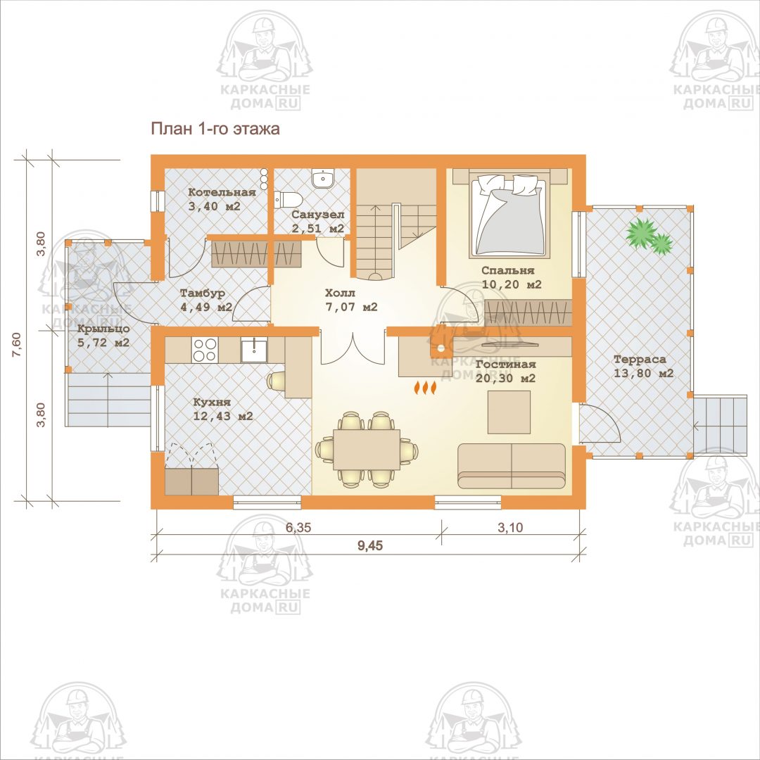 Каркасный дом 7.5x9.5 Проект "Индиголит"