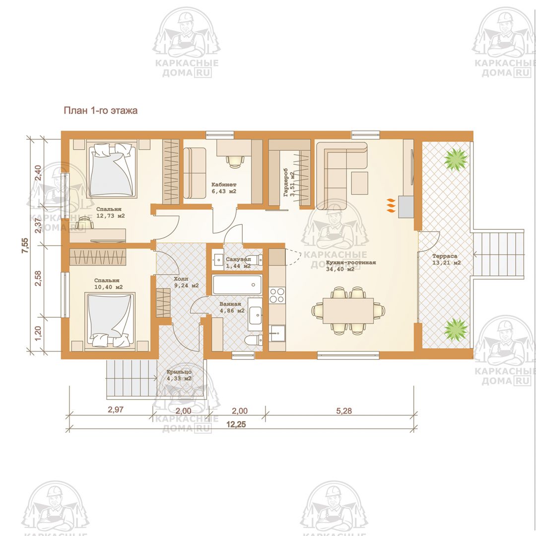 Каркасный дом 7x12 Проект "Ангелит"