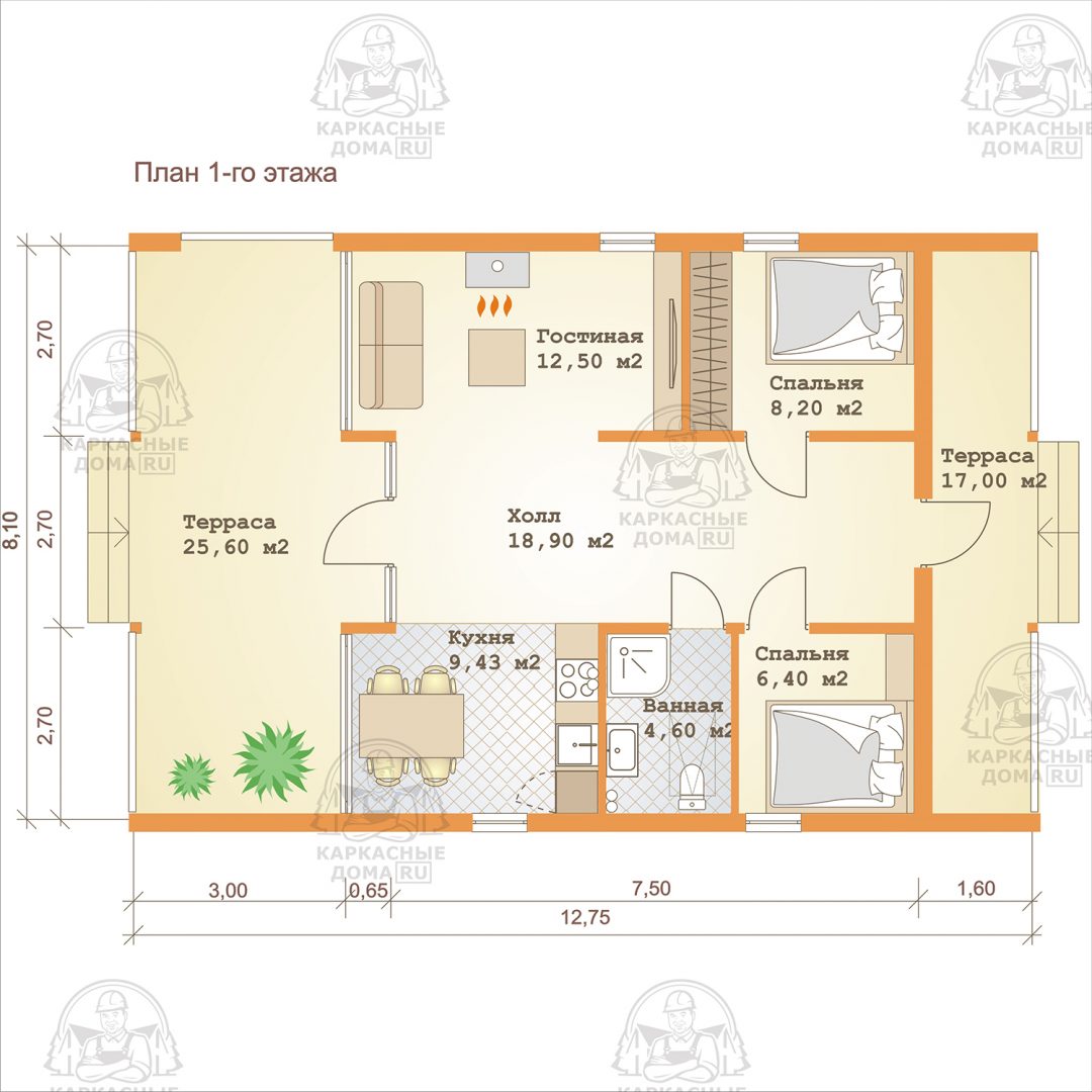 Строительство каркасного дома 12х9 "Лаура" под ключ