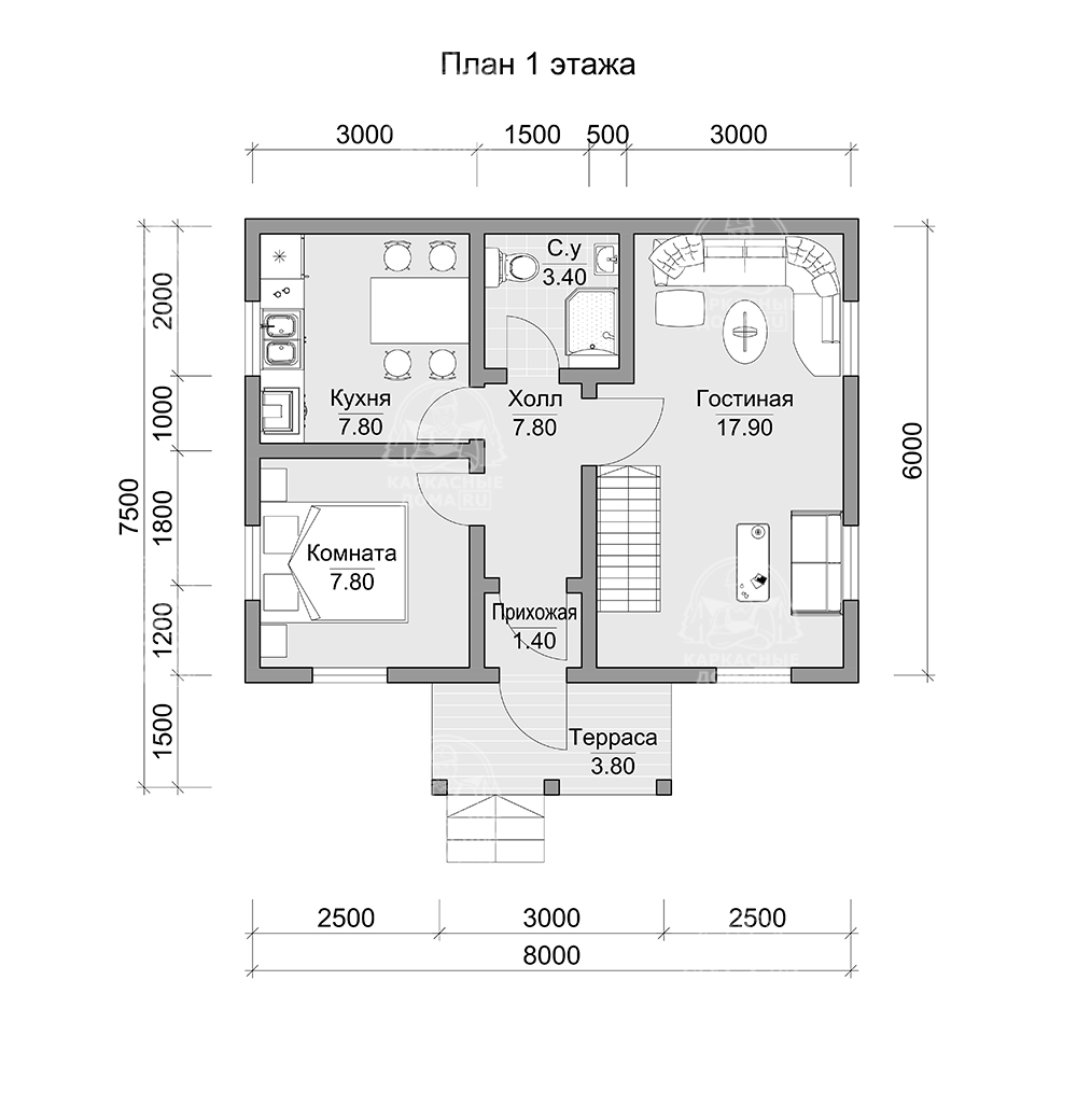 Каркасный дом 8x7.5 Проект "Бирюза"