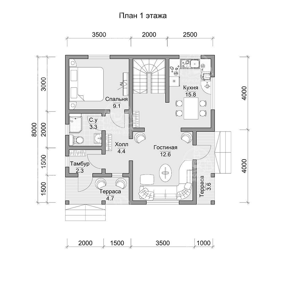 Проект одноэтажного дома "Красная Шапочка" из бруса