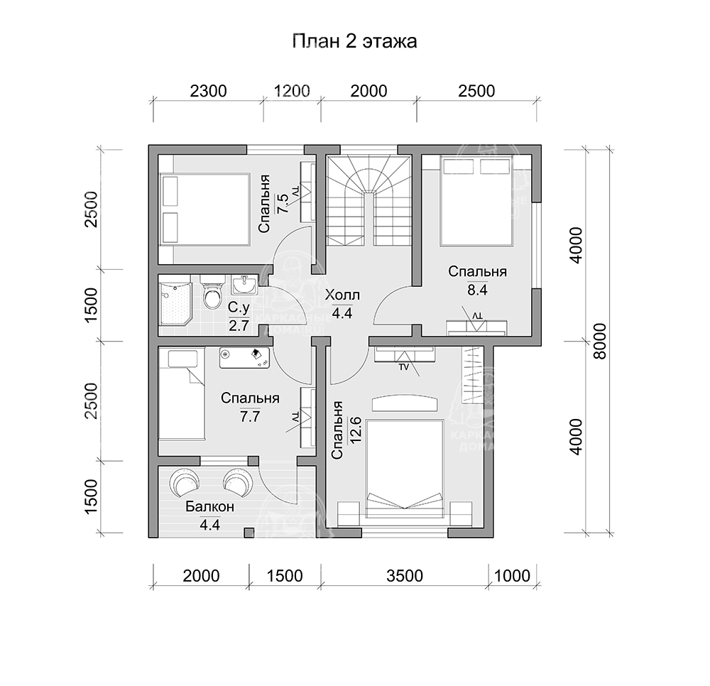 Проект двухэтажного дома "Уголок 9х10" из бруса