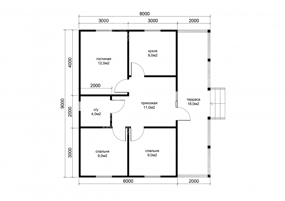 2 спальн. · 1 этаж