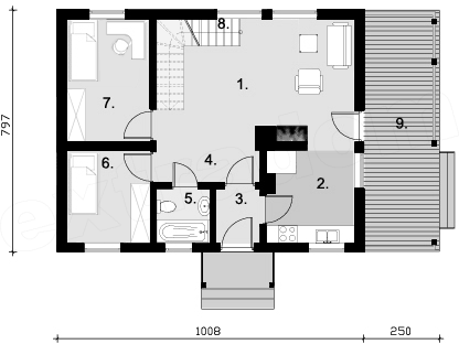 Проект одноэтажного дома "Зеленогорский" из бруса