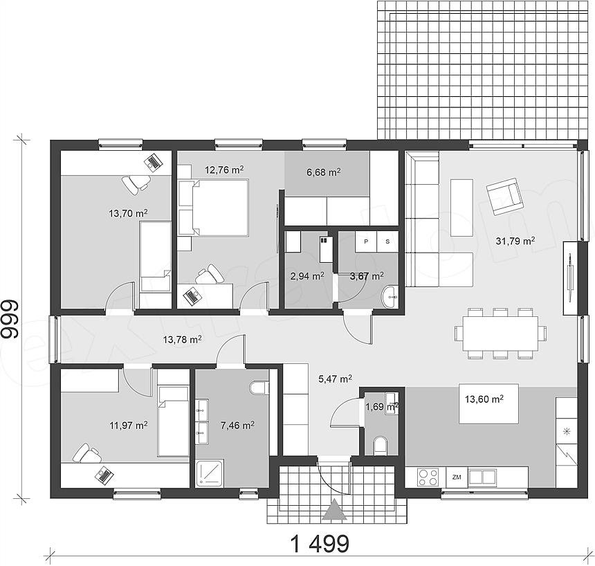 Проект одноэтажного дома "Опалево-М3" из бруса