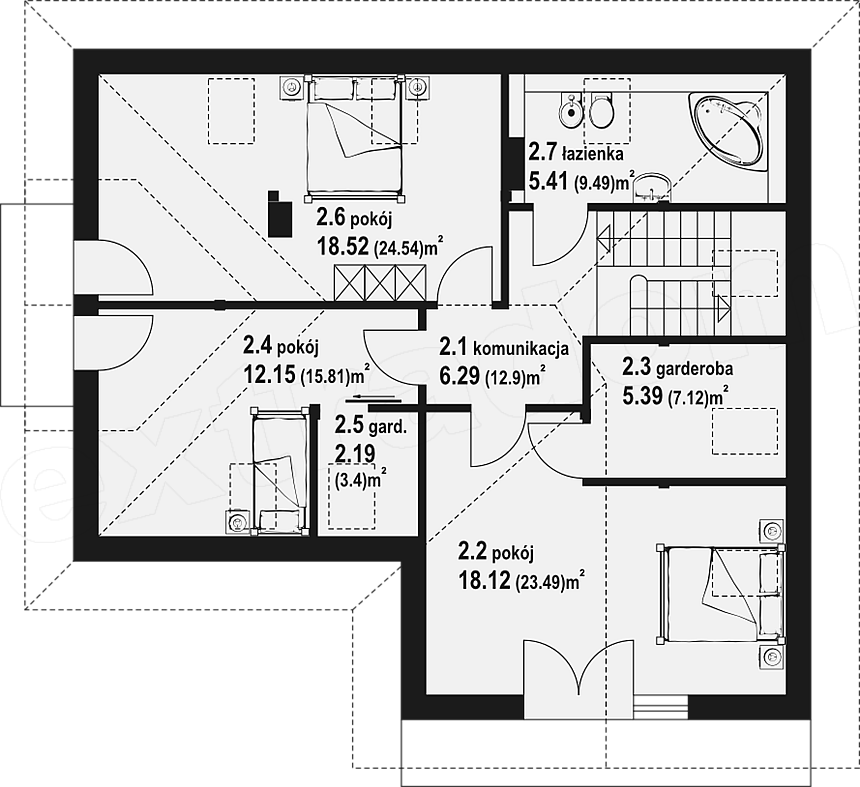 2 спальн. · 1 санузл. · 2 этаж