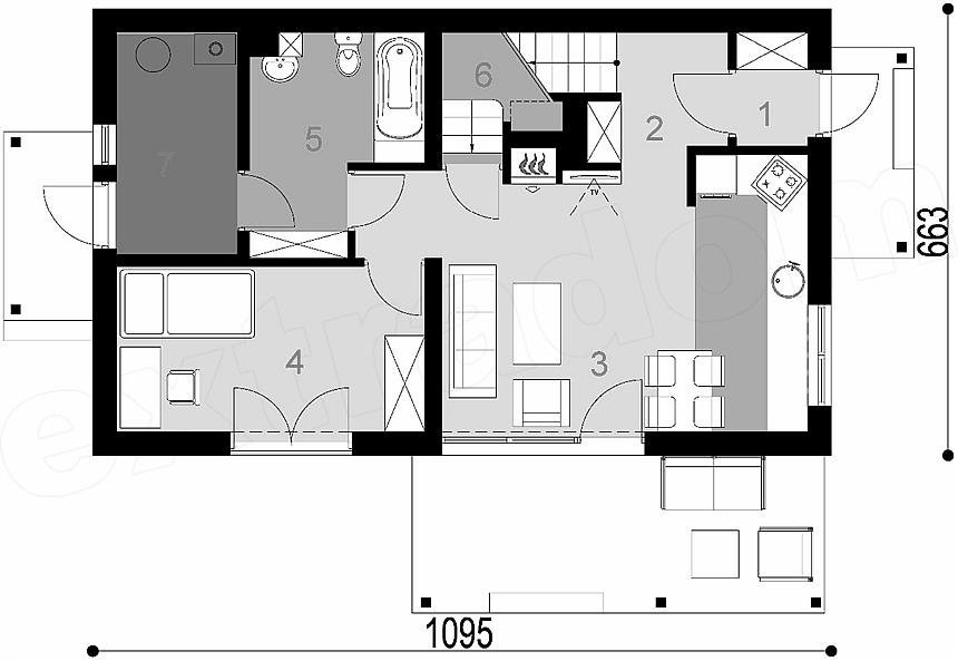 Проект одноэтажного каркасного дома "Ласточка-1"