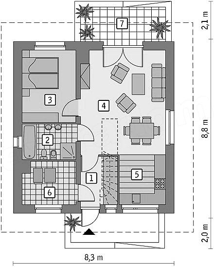 Проект одноэтажного каркасного дома "Калибан"