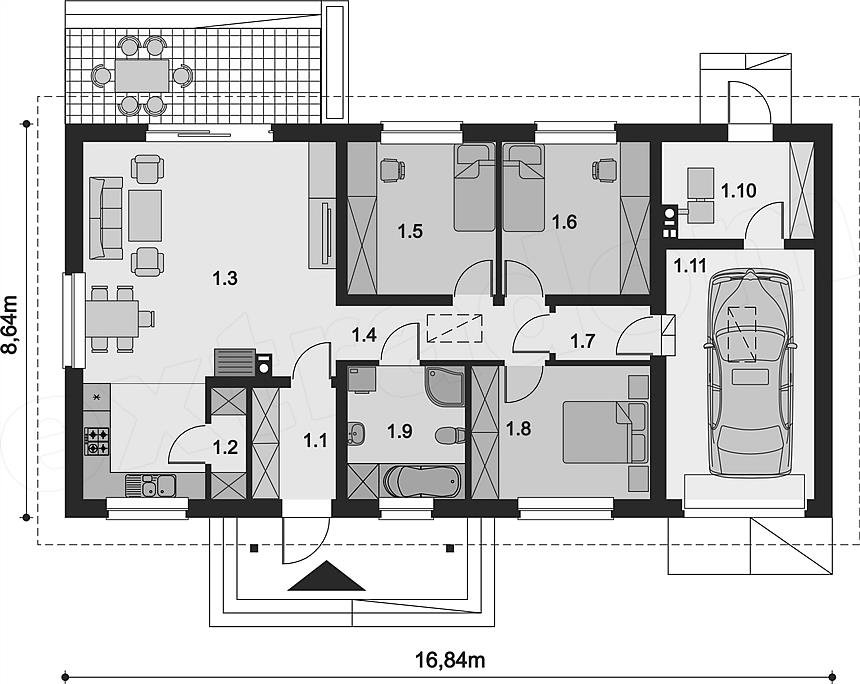 Проект одноэтажного каркасного дома "Ласточка-1"