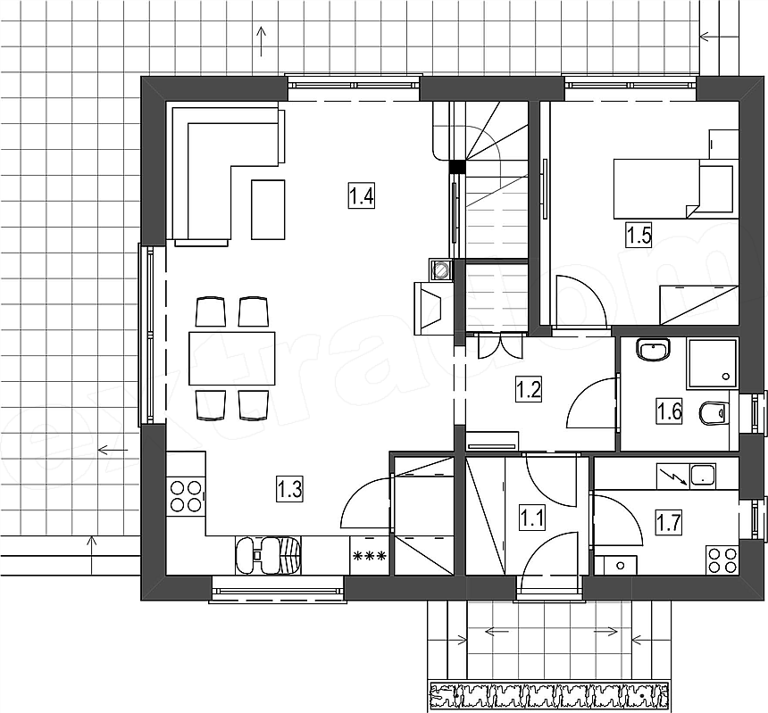 3 спальн. · 1 этаж