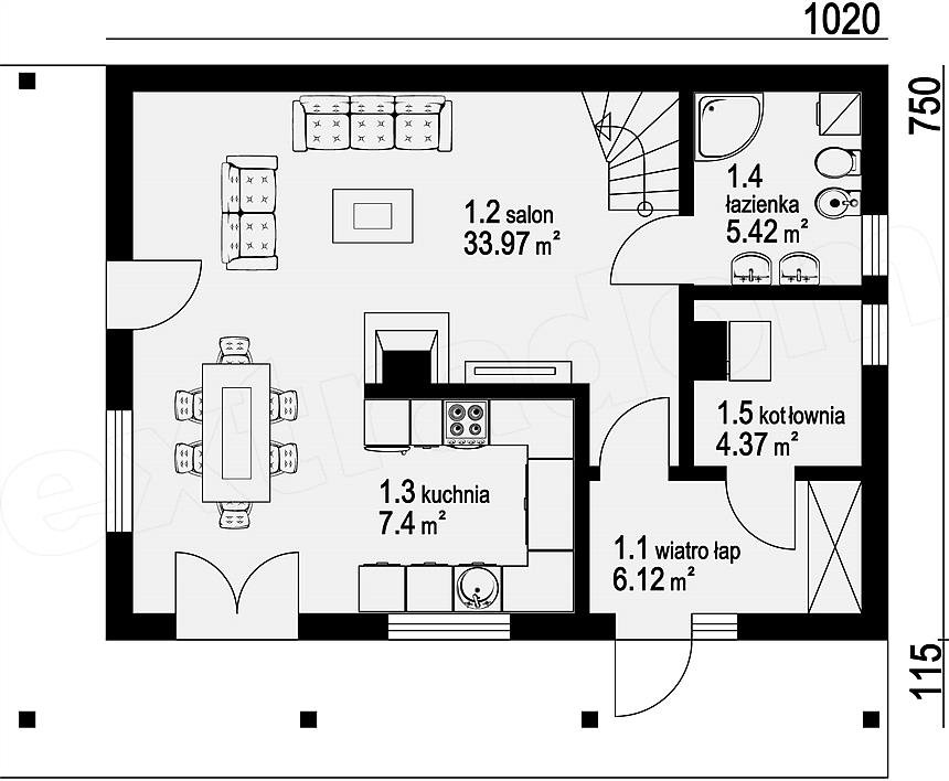 Проект двухэтажного дома "Уголок-М3" из бруса