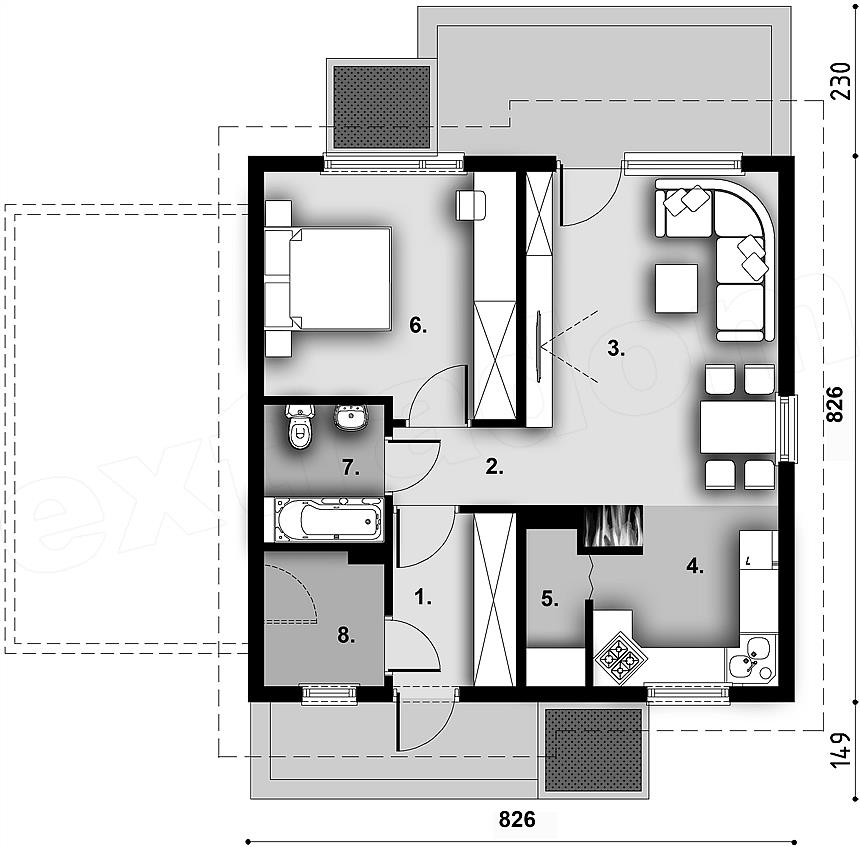 Проект одноэтажного каркасного дома "Диш2"