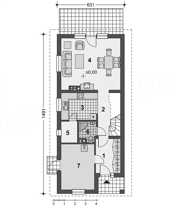 Проект одноэтажного дома "Ключик-3" из бруса