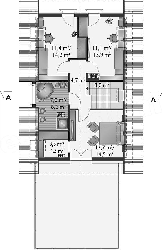 Проект каркасного дома с мансардой Бавария 2 M под ключ от компании БАКО