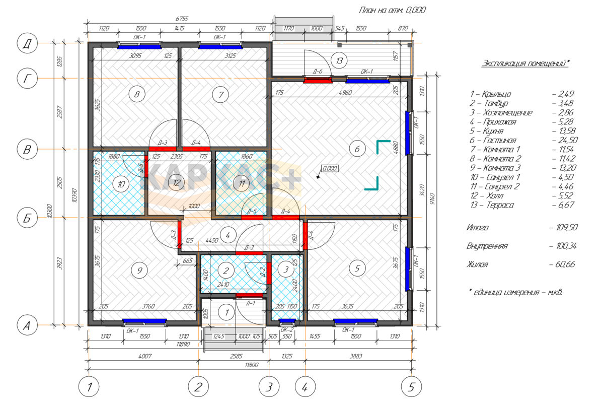Проект одноэтажного коттеджа "Незабудка" из газобетона
