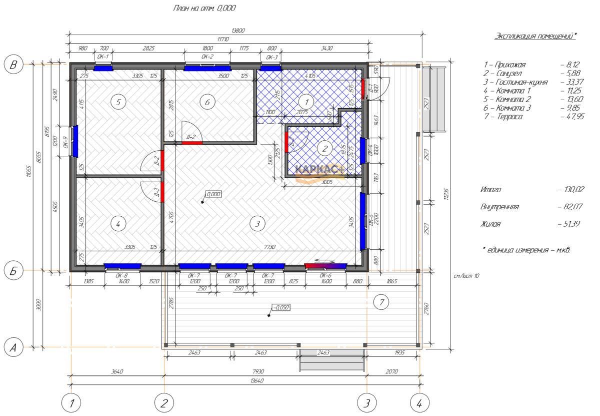Проект одноэтажного каркасного дома "Княжич ТН1"