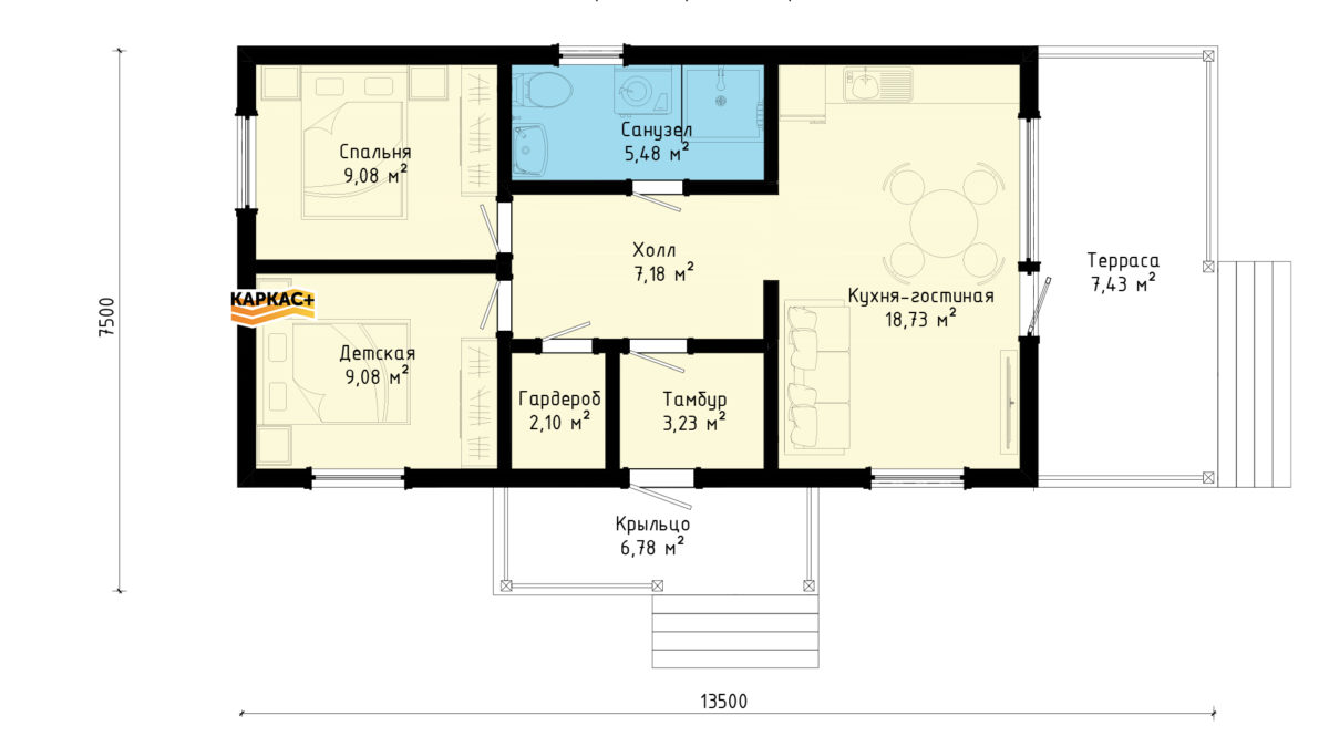 Проект одноэтажного каркасного дома "Кибела"